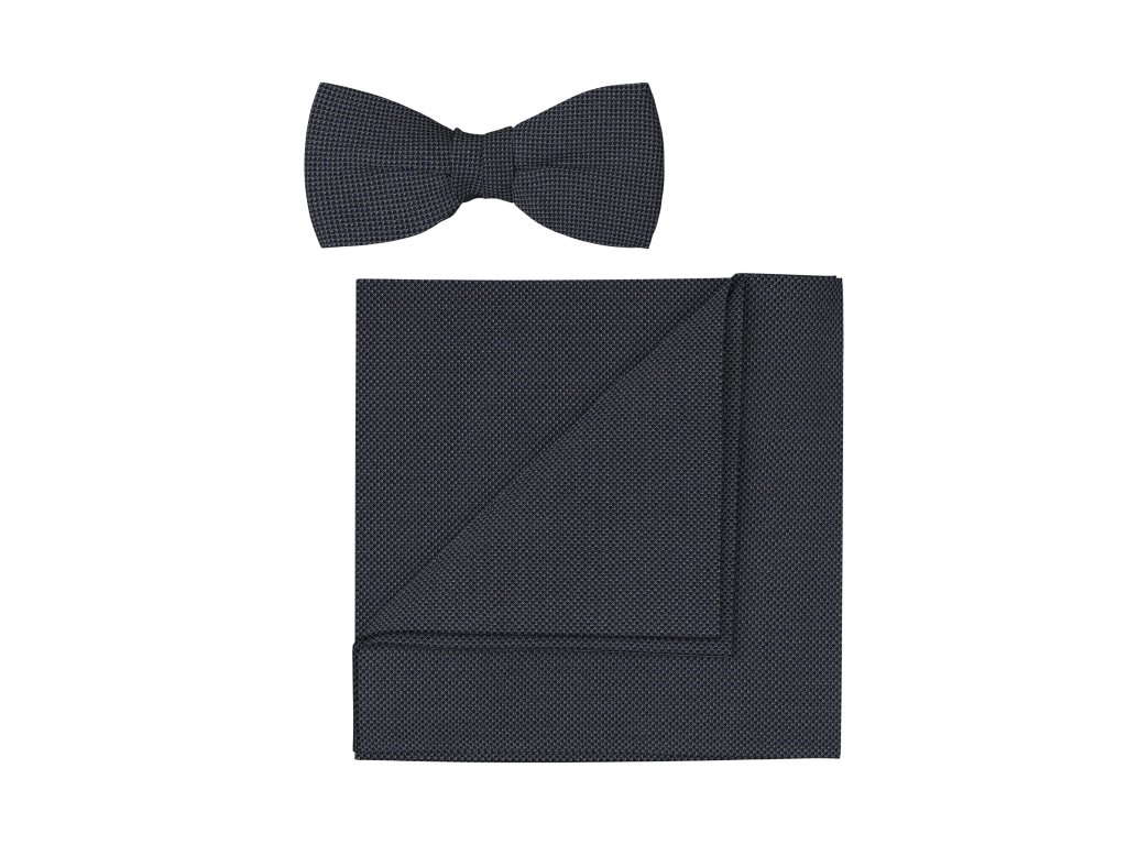 Elegantní set motýlku a kapesníčku s jemnou strukturou látky. Ideální doplněk k obleku pro slavnostní příležitosti, svatby i večerní akce. Motýlek je předvázaný a snadno nastavitelný, kapesníček dokonale ladí ve stejném designu.