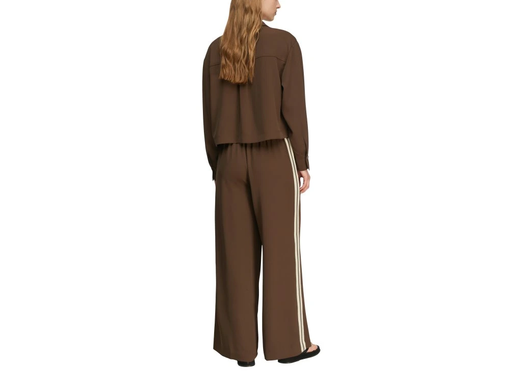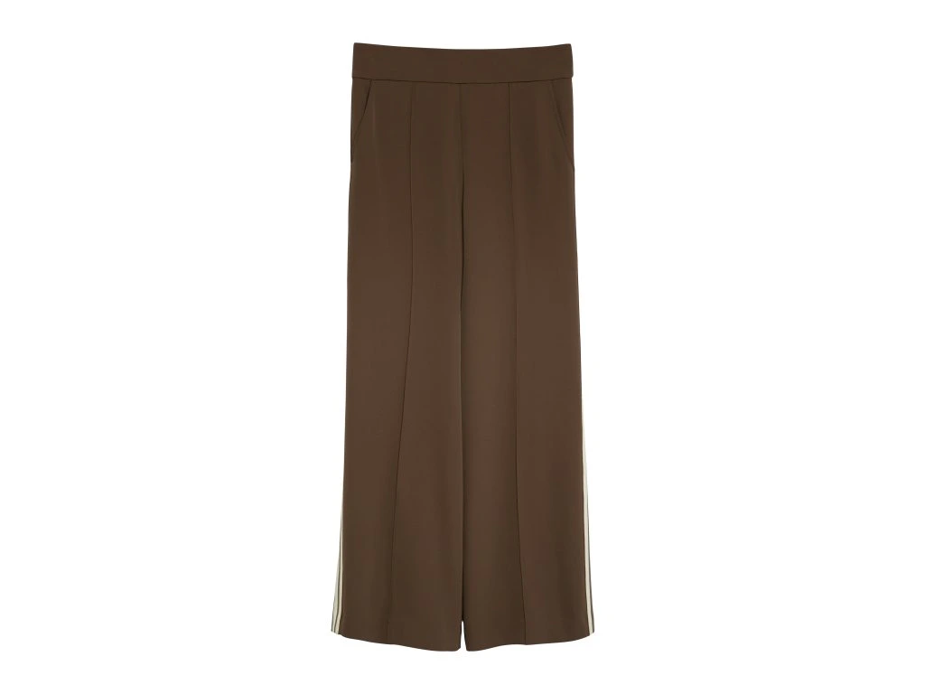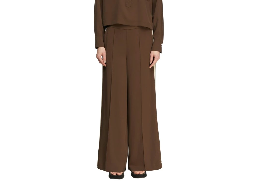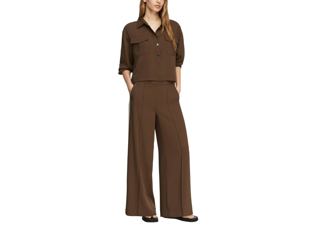 Elegantní dámské kalhoty v hnědém odstínu představují stylový a nadčasový kousek pro různé příležitosti. Volný střih se širokými nohavicemi působí sofistikovaně a zároveň zajišťuje maximální pohodlí.