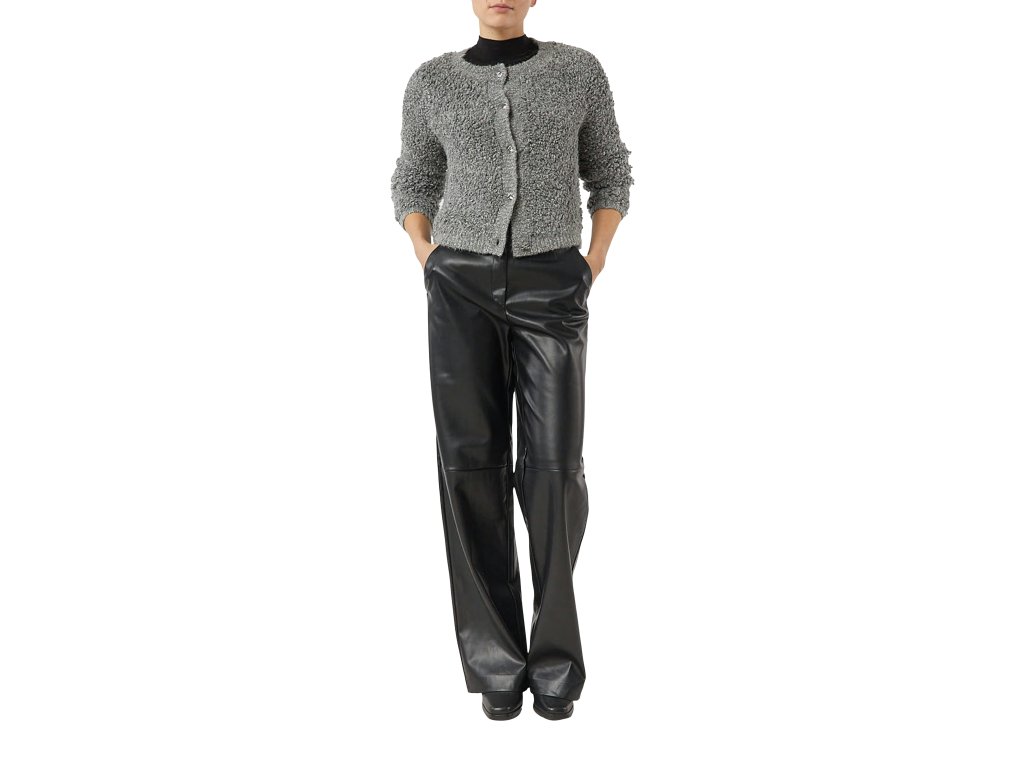 Trendy kalhoty v elegantním koženém vzhledu představují dokonalý mix stylu a sebevědomí. Široký střih prodlužuje siluetu a vytváří moderní, uvolněný efekt. Perfektní volba k pletenému svetru, košili i saku.