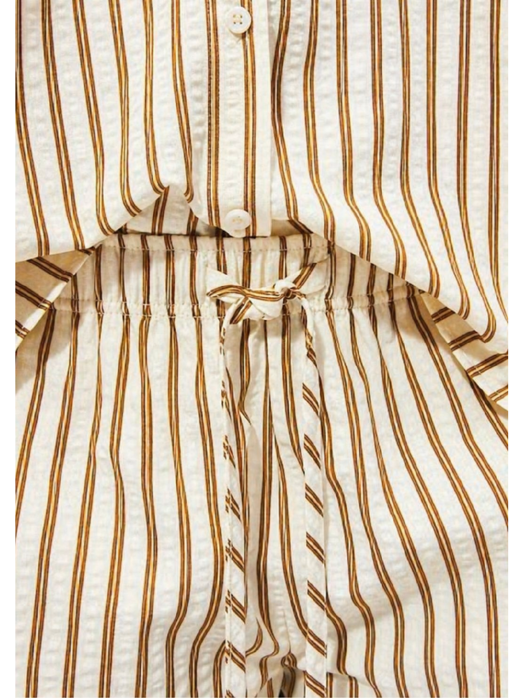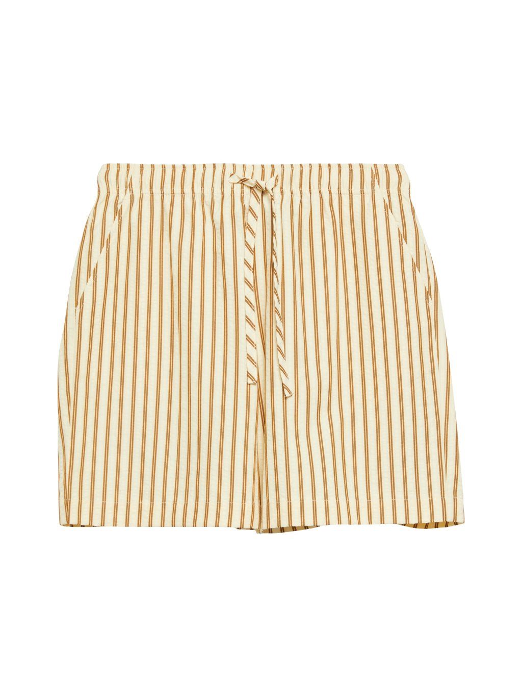 Lehké dámské kraťasy s jemným proužkem v krémovo-hnědé kombinaci jsou ideální volbou pro pohodlný letní outfit. Vzdušný materiál zajišťuje maximální komfort i během teplých dnů.