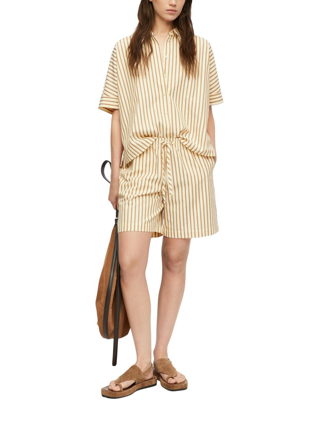Kraťasy mají volnější střih s elastickým pasem a šňůrkou na stažení, díky které se snadno přizpůsobí postavě. Vertikální proužky opticky prodlužují nohy a dodávají modelu elegantní vzhled, zatímco minimalistické provedení umožňuje snadné kombinování.