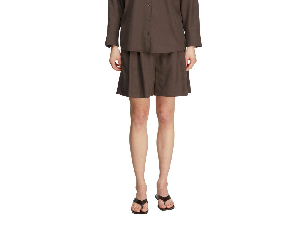 Dámské Šortky v elegantním hnědém odstínu představují ideální spojení pohodlí a moderního stylu. Volnější střih s lehkým řasením v pase působí vzdušně a zajišťuje maximální komfort při nošení.
