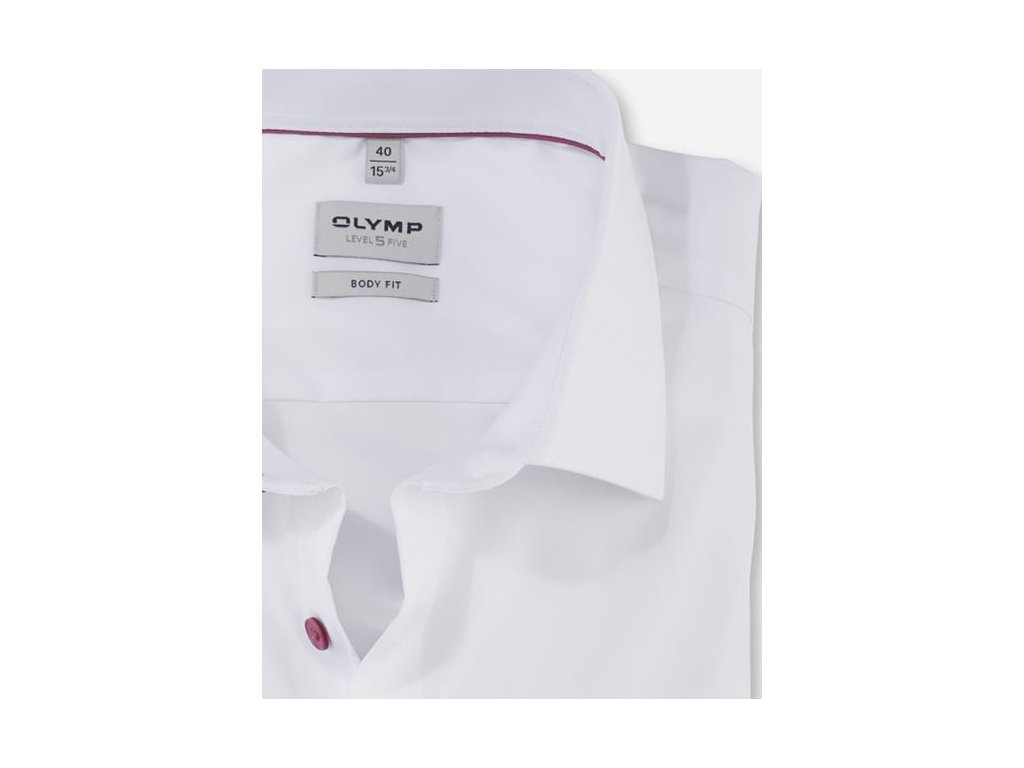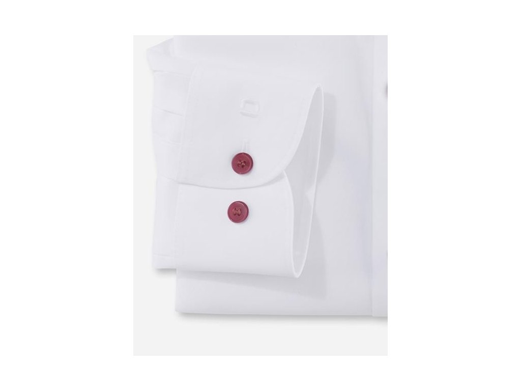 Zvláštní příležitosti vyžadují speciální košili. Svatební košile OLYMP Level Five pro ženicha a hosty je provedena v zářivě bílém bavlněném popelínu, který je zvýrazněn kontrastními fialovými knoflíky.
