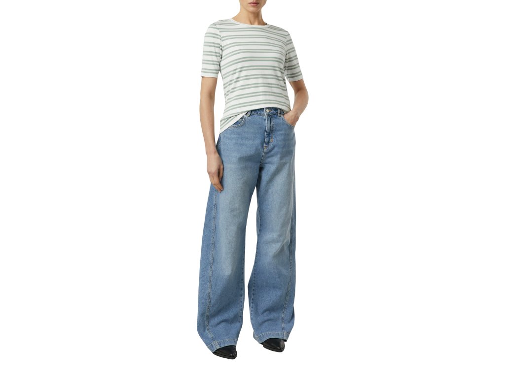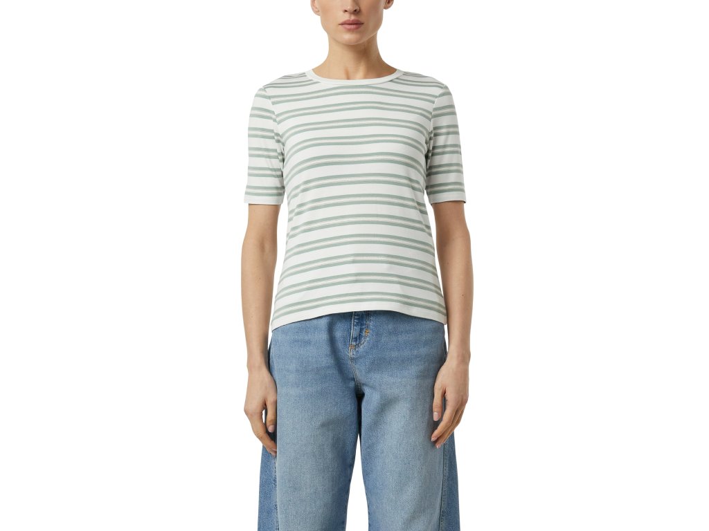 Dámské pruhované tričko s krátkým rukávem je klasický základ šatníku, který nikdy nevyjde z módy. Přiléhavý střih zvýrazňuje siluetu, zatímco jemný, příjemný materiál zajišťuje komfort po celý den. Nadčasový pruhovaný vzor dodává outfitu svěží, moderní vzhled a umožňuje snadné kombinování s džínami, kalhotami i sukní.