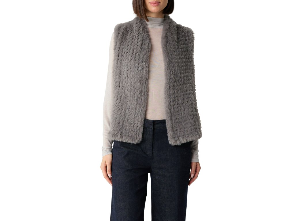 Modelka je vysoká 180 cm a má na sobě velikost 36.