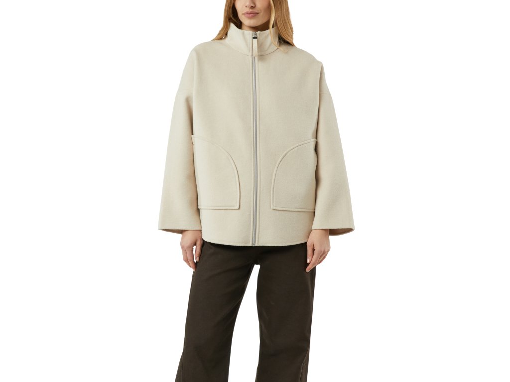 Moderní dámská bunda v minimalistickém designu, která zaujme čistými liniemi a pohodlným, lehce oversize střihem. Stojáček se zapínáním na zip dodává bundě současný vzhled a zároveň chrání před chladem. Kratší délka krásně funguje s kalhotami s vysokým pasem i se sukněmi.