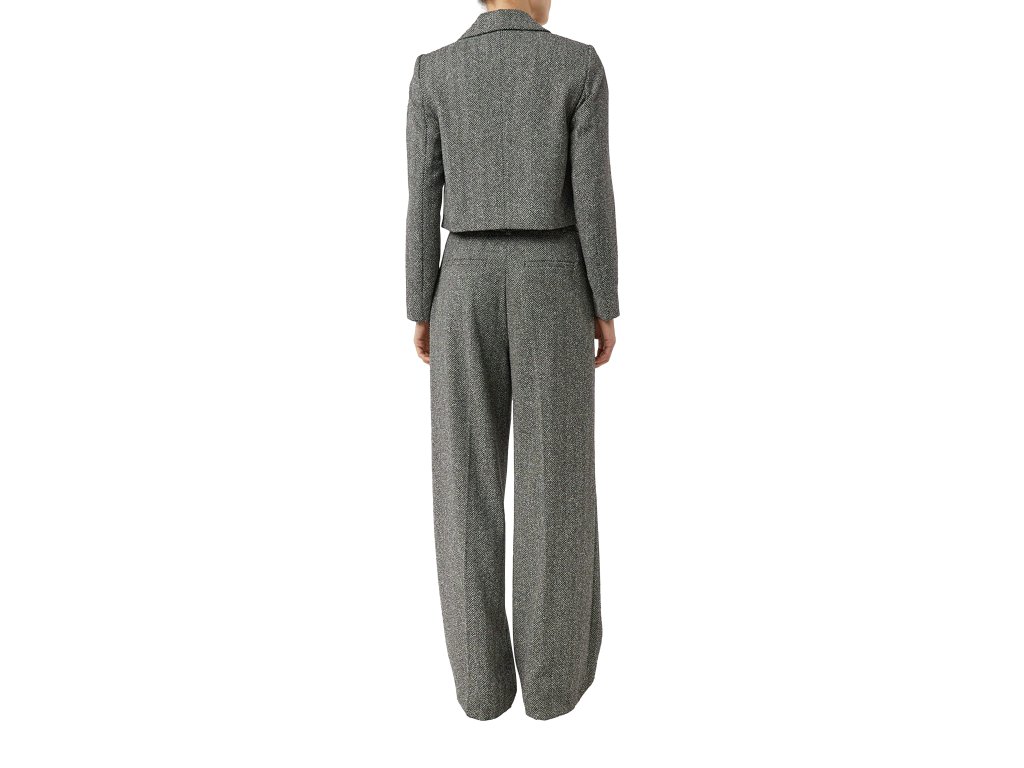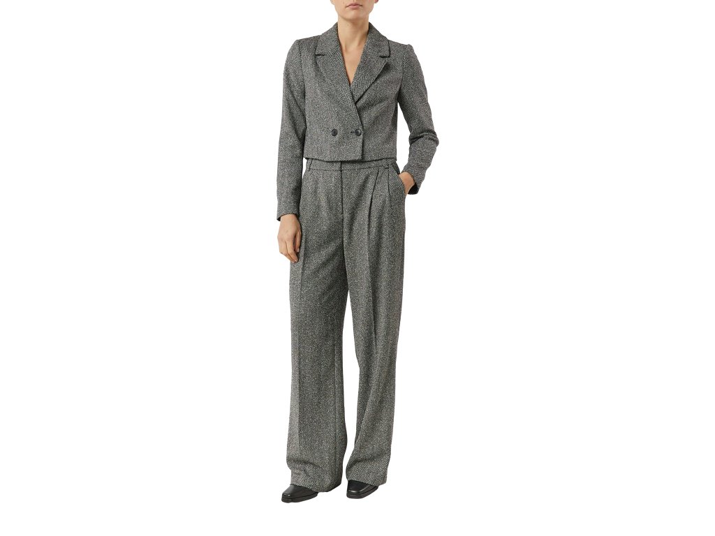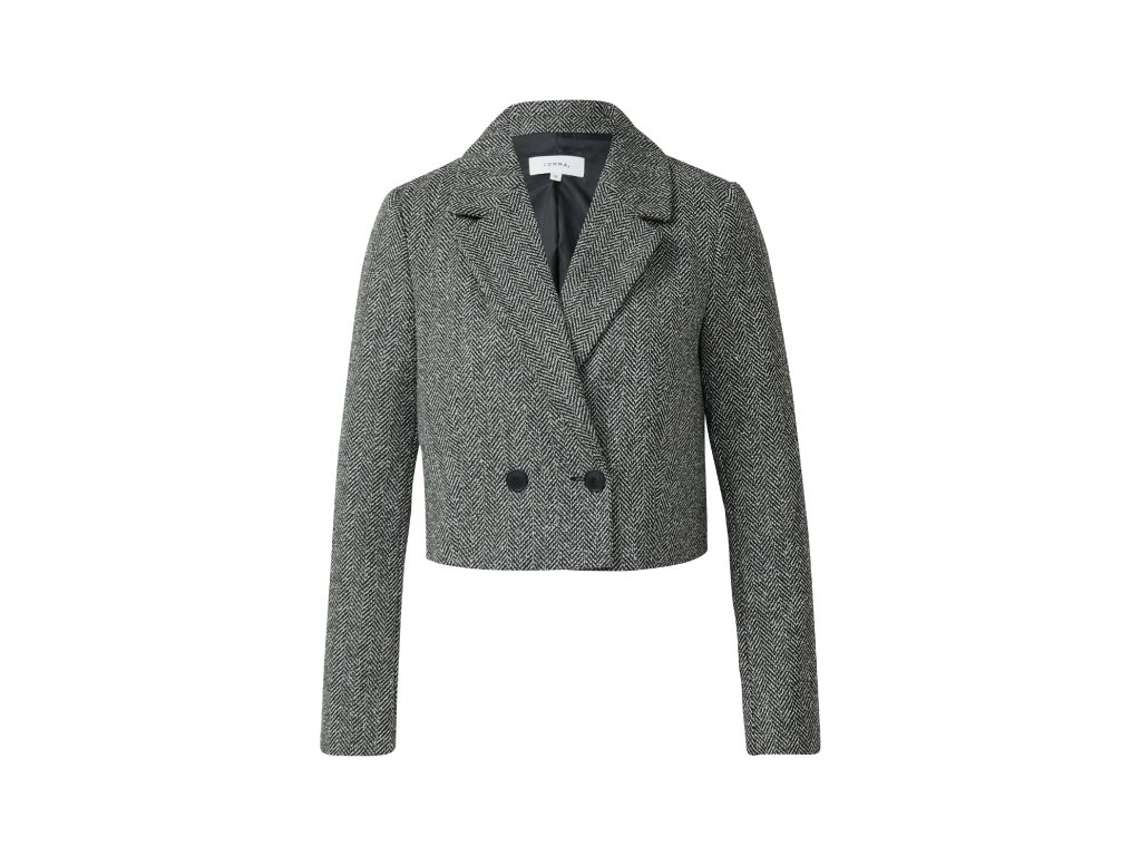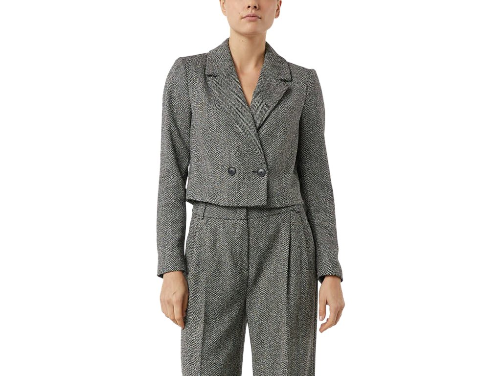 Stylové zkrácené sako v klasickém vzoru rybí kosti dodá vašemu outfitu sofistikovaný nádech. Díky dvouřadému zapínání a vypasovanému střihu krásně zvýrazní siluetu a skvěle se hodí jak k elegantním kalhotám, tak k džínům.